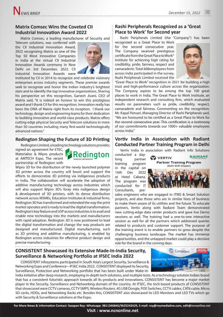 Vertiv India in association with Radiant conducted Partner Training Program – NCN Magazine December 2022