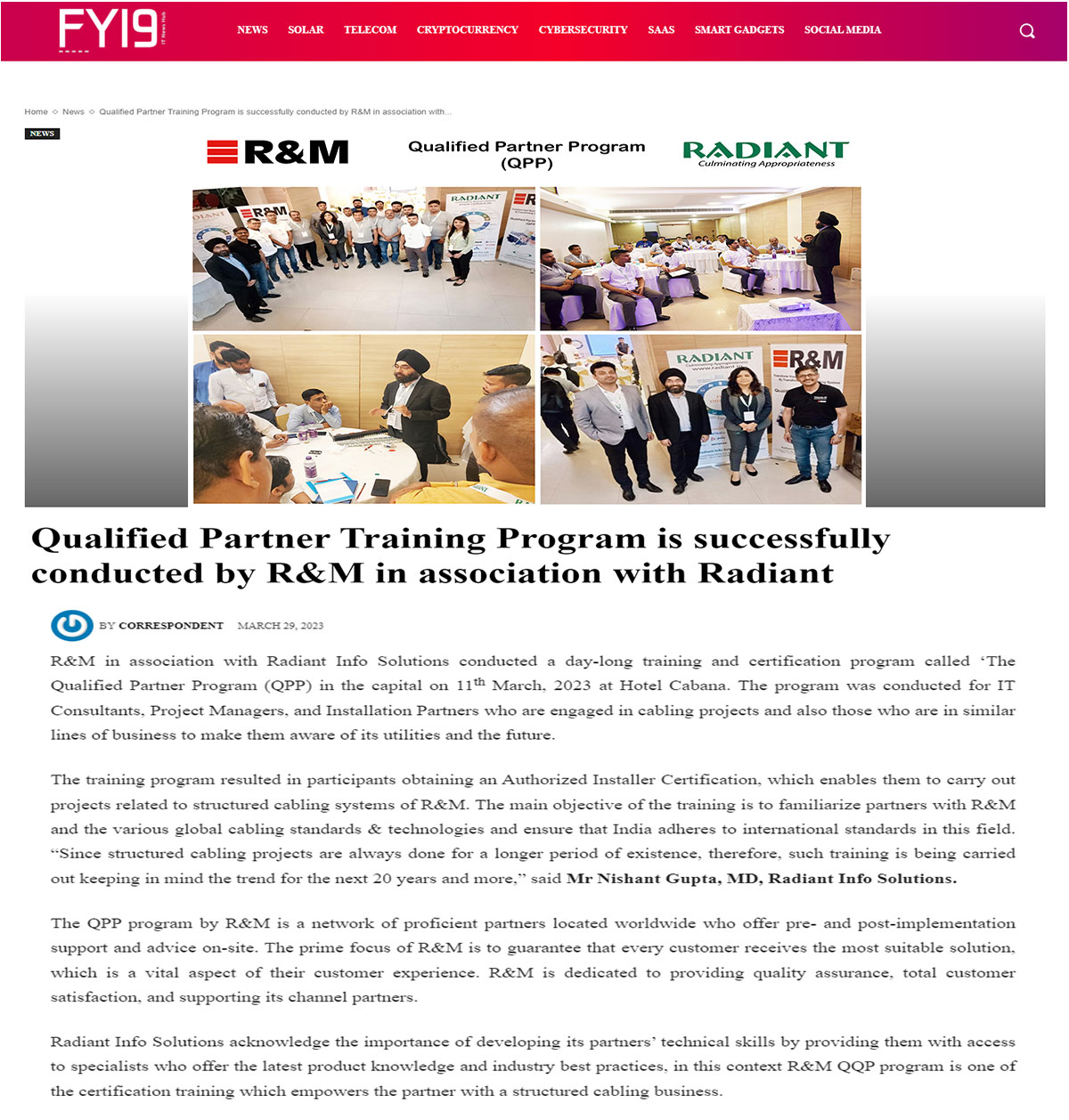 Qualified Partner Training Program is successfully conducted by R&M in association with Radiant