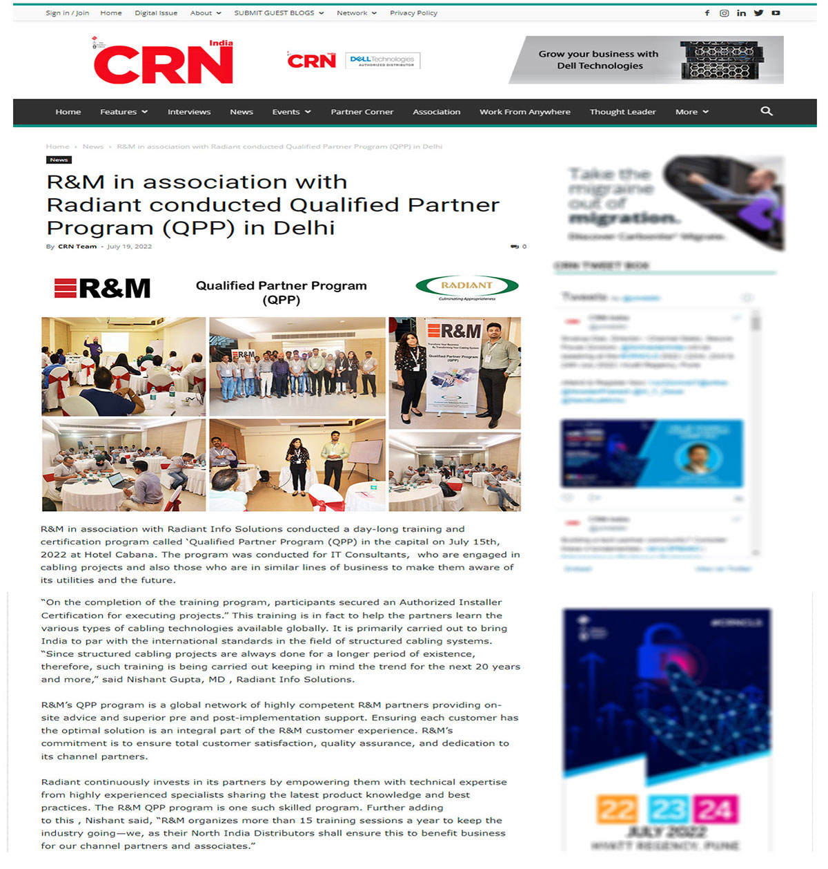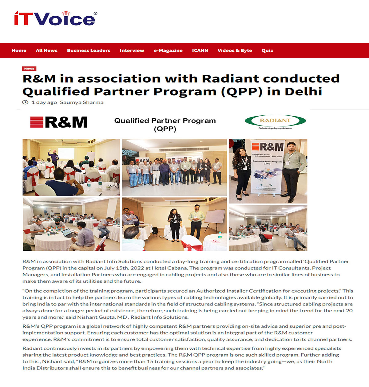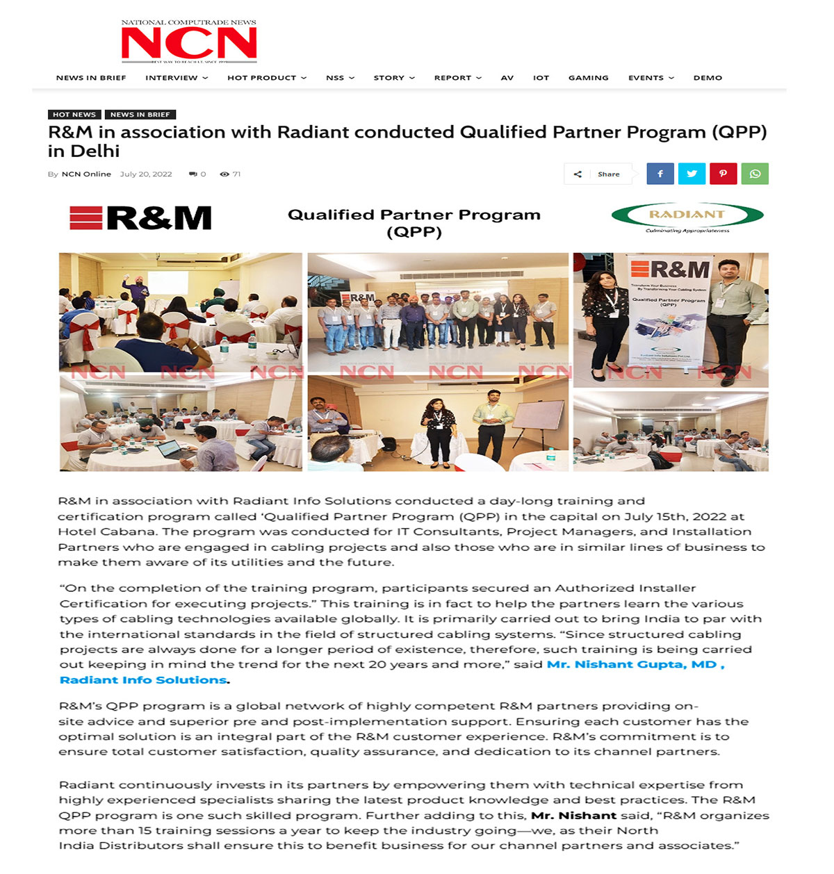 R&M in association with Radiant conducted Qualified Partner Program (QPP) in New Delhi