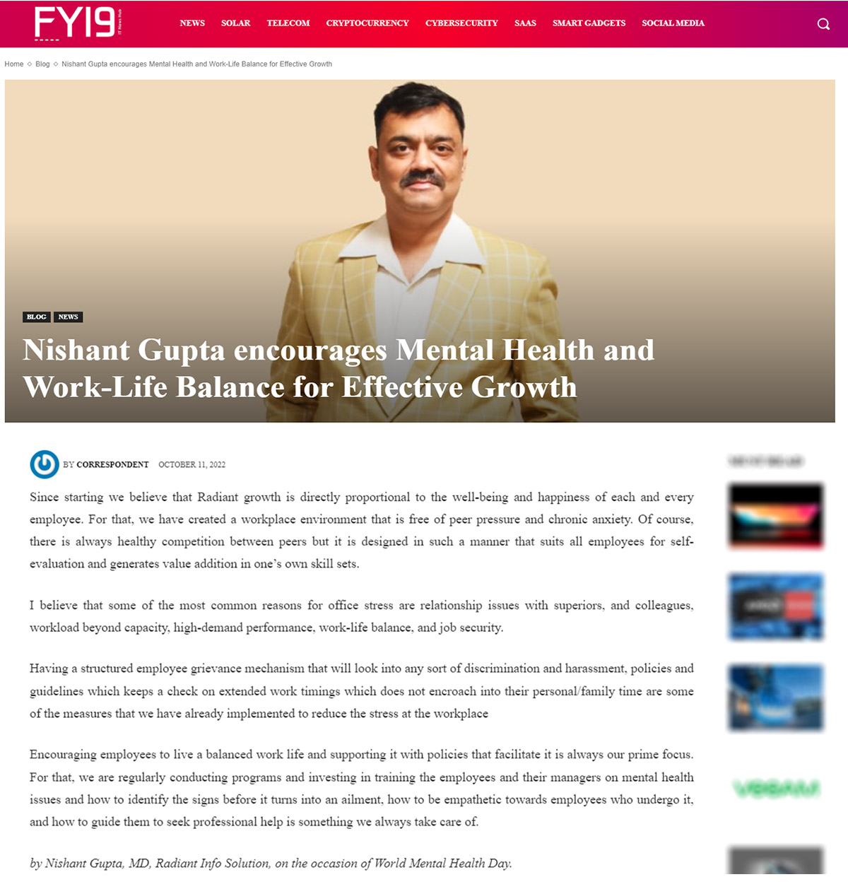 Nishant Gupta encourages Mental Health and Work-Life Balance for Effective Growth – FYI9
