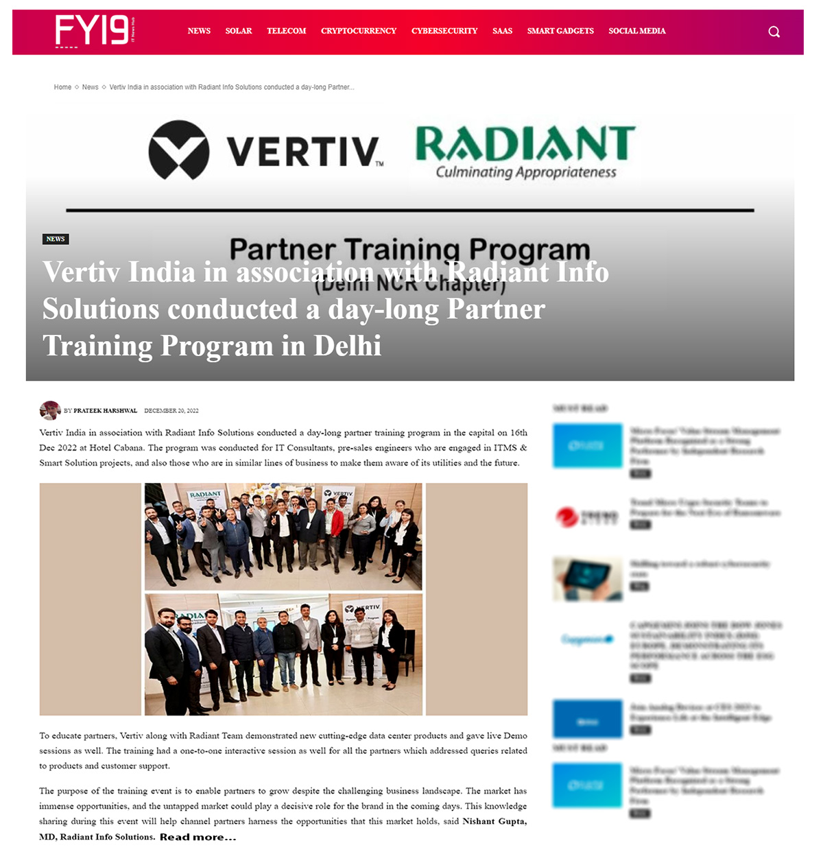 Vertiv India with Radiant conducted Partner Training Program – FYI9