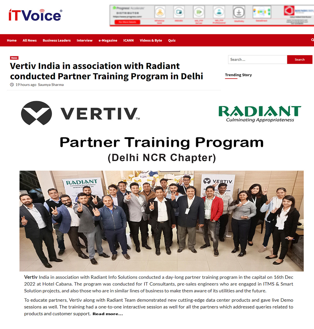 Vertiv India in association with Radiant conducted Partner Training Program in Delhi – ITVoice