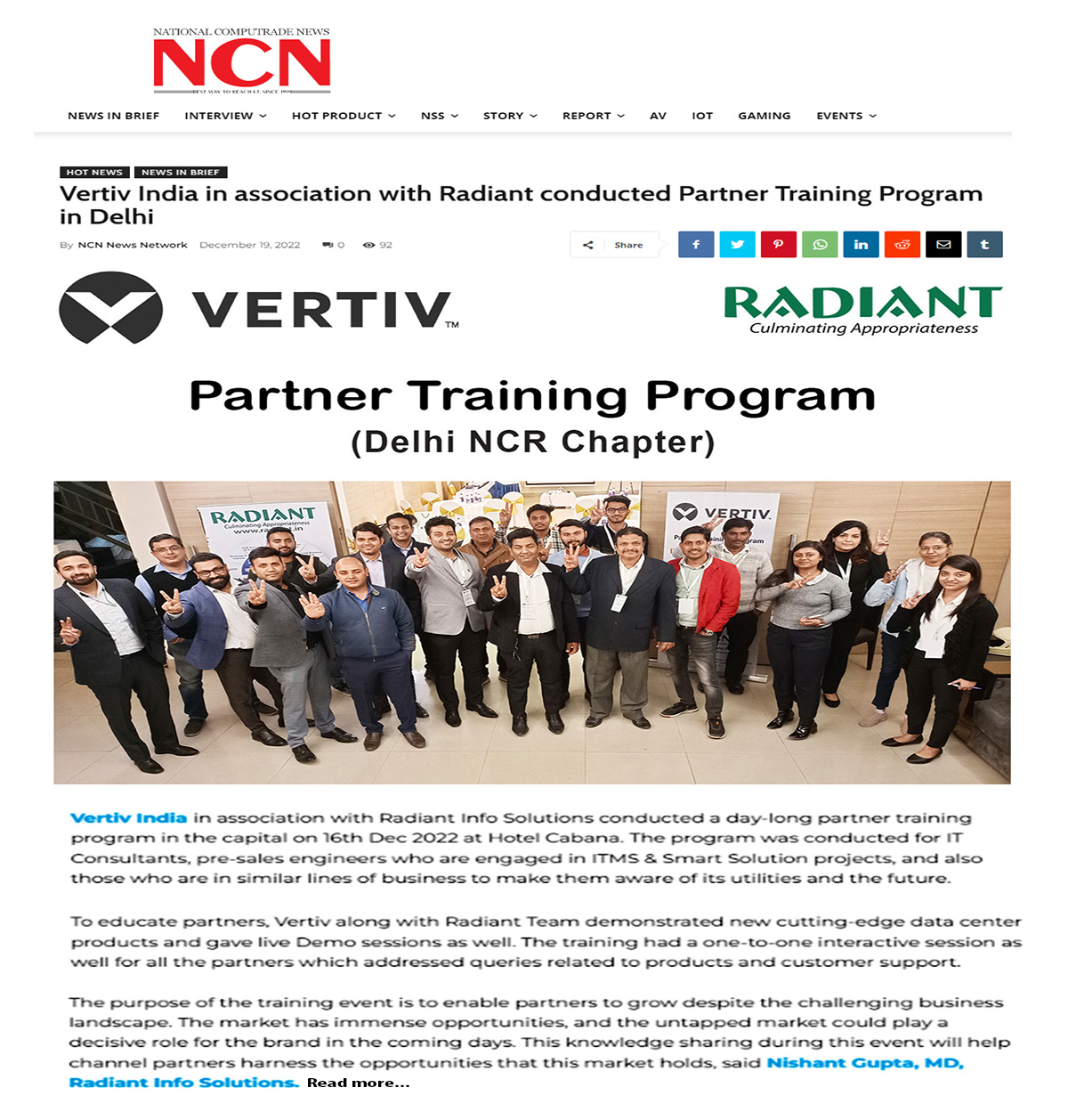 Vertiv India in association with Radiant conducted Partner Training Program in Delhi – NCN Magazine