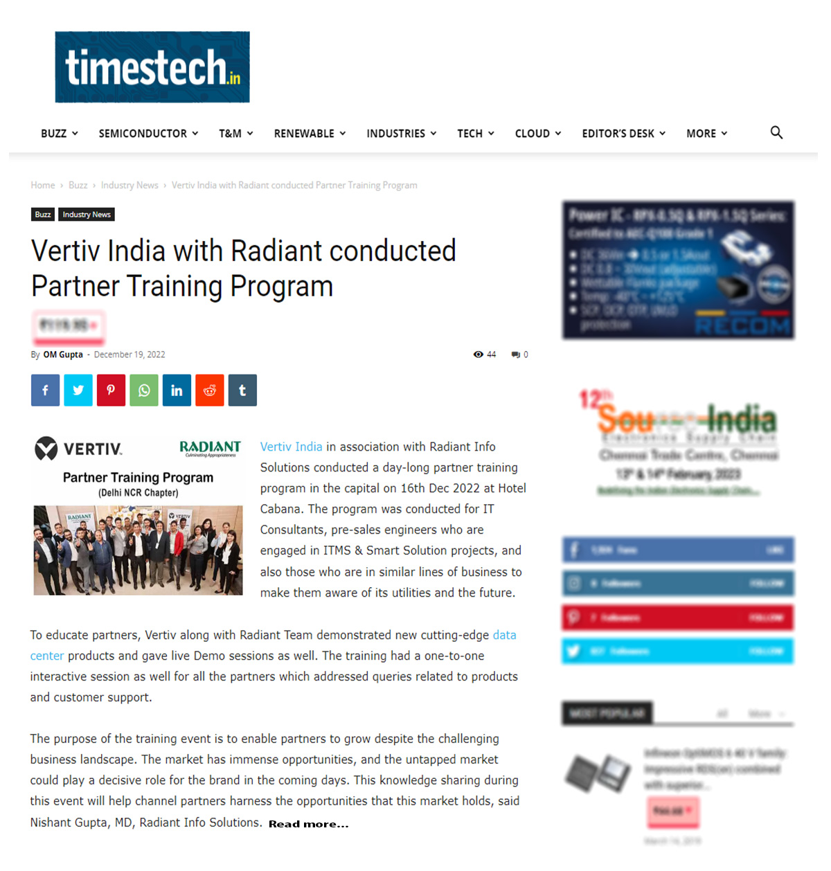 Vertiv India with Radiant conducted Partner Training Program – TimesTech