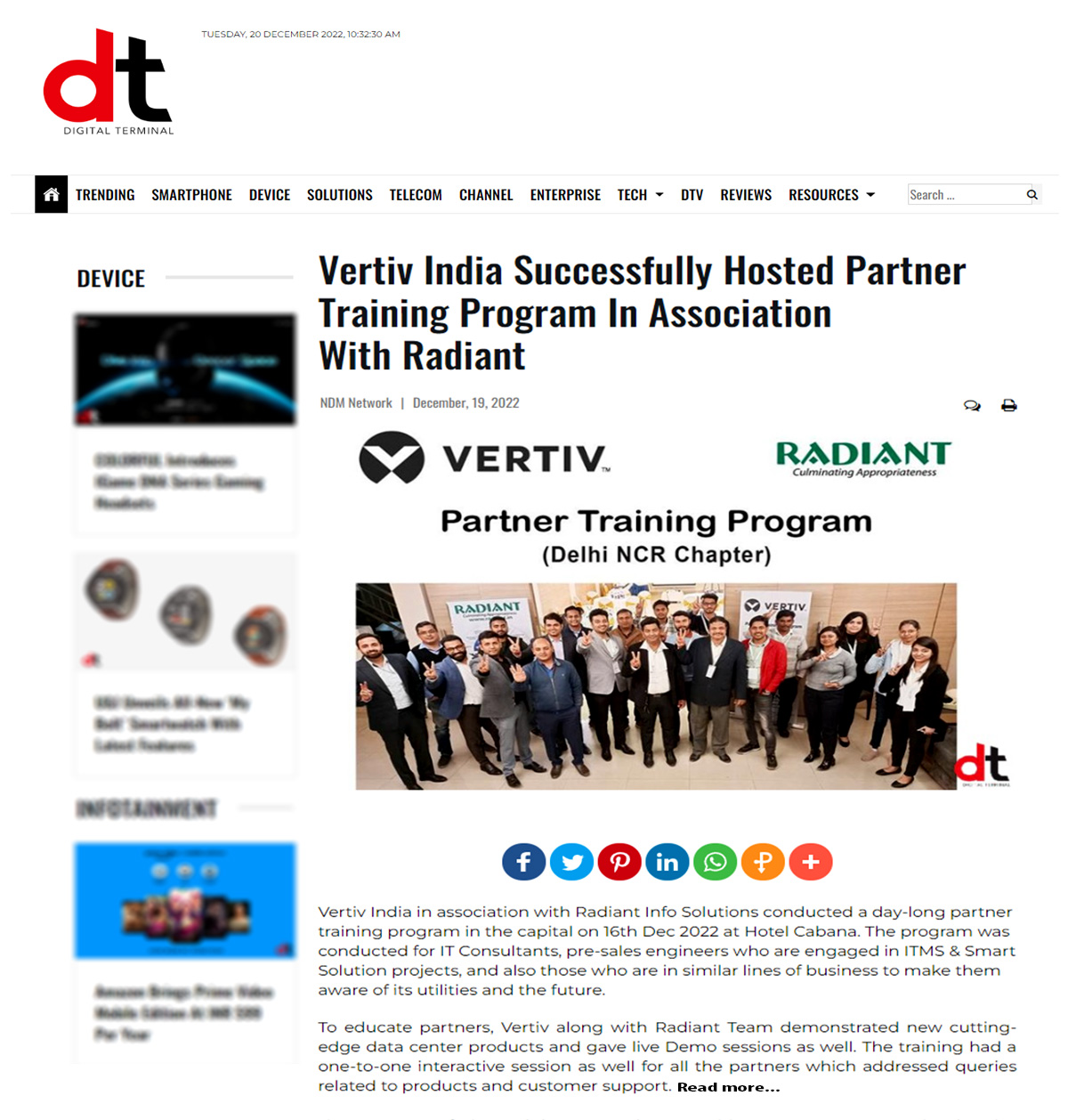 Vertiv India Successfully Hosted Partner Training Program in Association with Radiant – dt